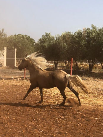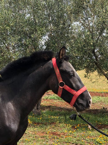 grande pouliche de quatre ans, un peu craintive lors de son achat mais elle comprend très vite et fait rapidement confiance...